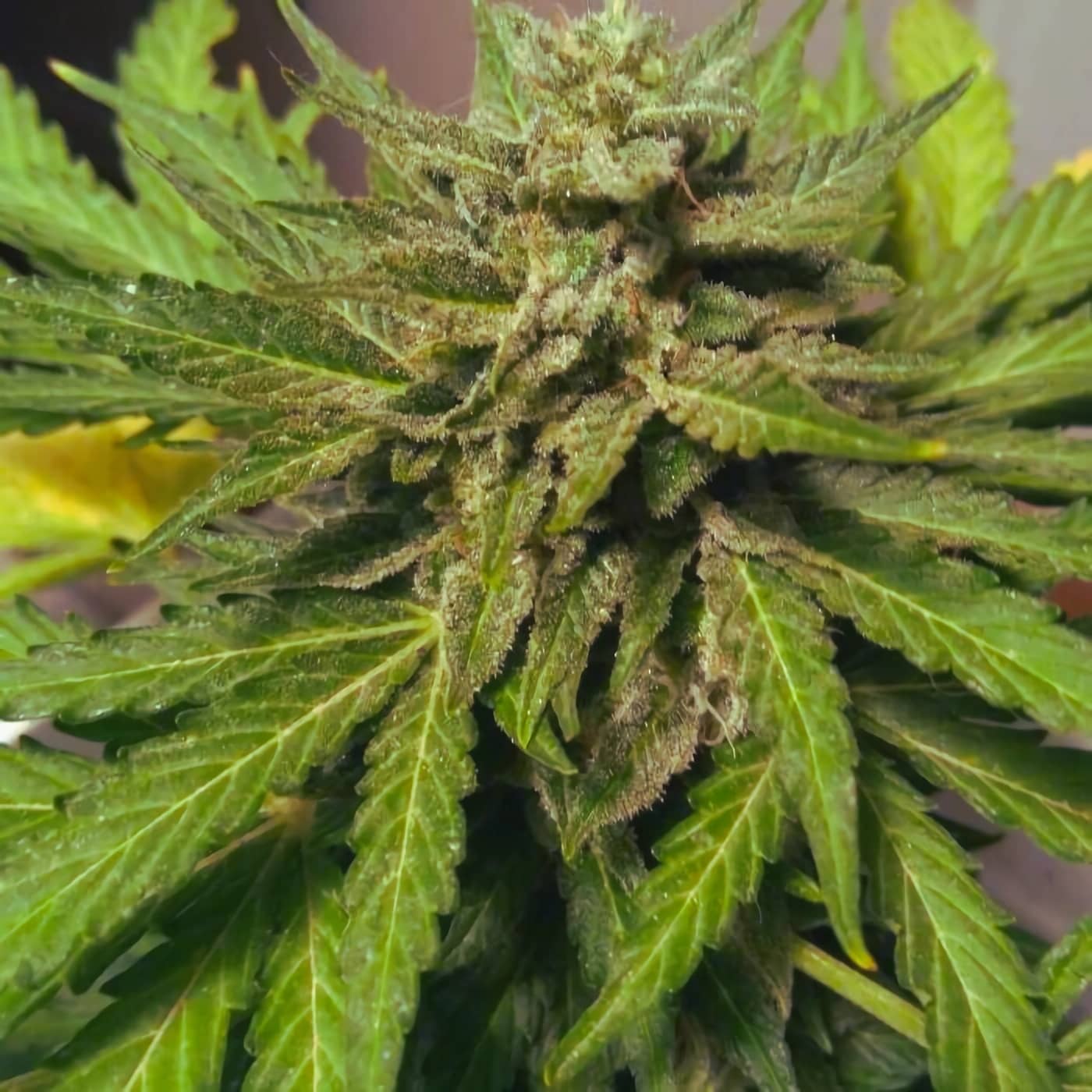 En floración desarrolla cogollos duros y compactos, con abundante resina y un aspecto muy comercial. En interior puede ofrecer producciones de 400–550 g/m² y en exterior rendimientos habituales de 40–120 g por planta, dependiendo de las condiciones de cultivo.